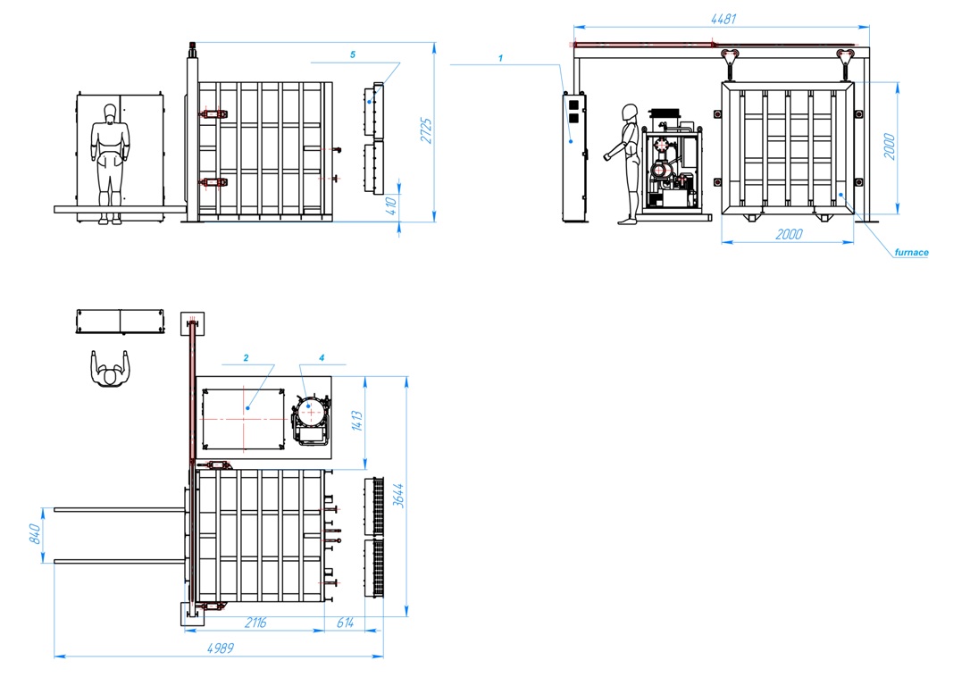 *– Die angegebenen Abmessungen beziehen sich auf eine der möglichen Ausführungen der Anlage. GlobeCore fertigt Vakuumkammern in verschiedenen Größen nach Kundenwunsch.