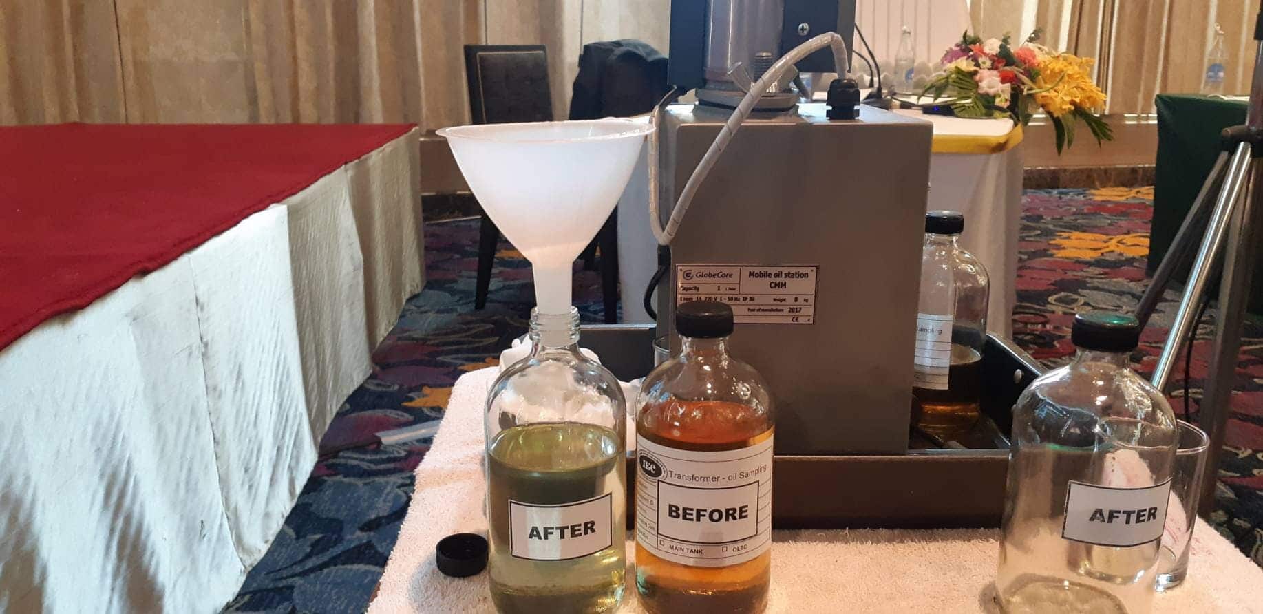 GlobeCore produce una amplia gama de equipos para el mantenimiento de transformadores a lo largo de su ciclo de vida: instalaciones para la limpieza y regeneración de aceites aislantes, cámaras de secado al vacío, bloques de vacío, instalaciones para agregar aceite a bujes de alto voltaje, etc. Un lugar especial pertenece a la tecnología de regeneración, que le permite restaurar el uso inadecuado del aceite y reutilizarlo en el transformador. Este enfoque no solo ahorra dinero en la compra de aceite fresco, sino que también mantiene todo el sistema de aislamiento en condiciones adecuadas, que es el punto más vulnerable del transformador.