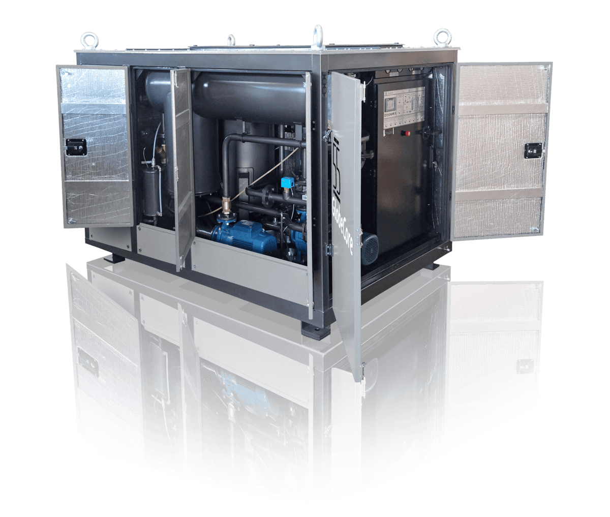 La planta CMM-15 está construida como una unidad autónoma, con todos los componentes y conjuntos operativos protegidos por paneles metálicos y puertas laterales y traseras con resortes de gas de fácil apertura.