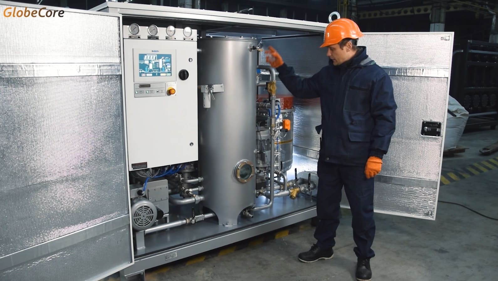 El sistema de filtración de aceite de turbina CMM-4,0T se puede utilizar en procesos tales como limpieza, la deshumidificación y desgasificación. También es posible aspirar equipos de terceros. La máquina se utiliza para aceites de turbina con una viscosidad de no más de 280 cSt a 50ºC.