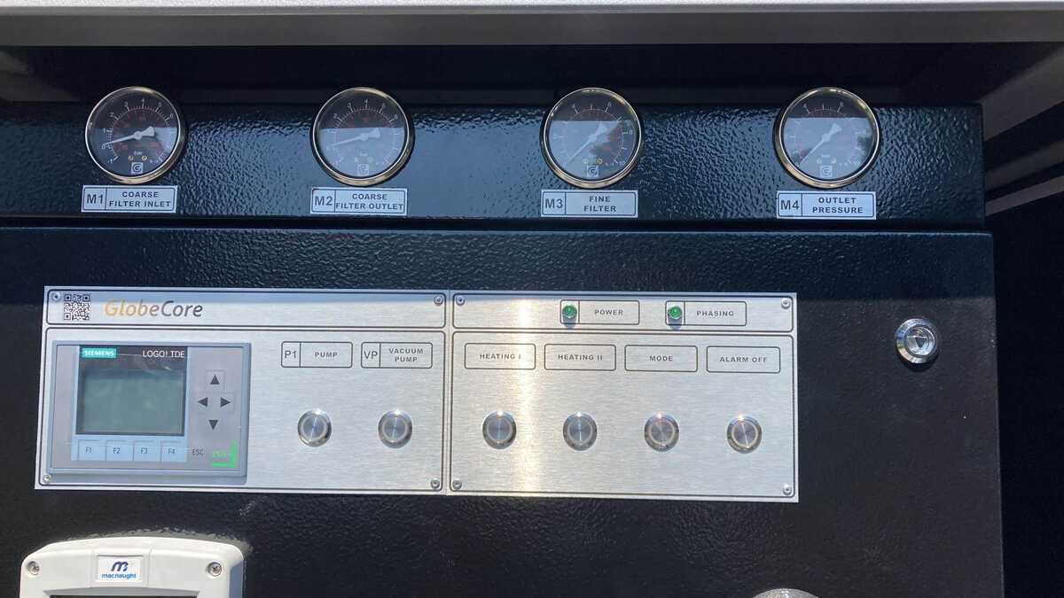 Ce projet a été mis en œuvre avec la participation de Wolfgang Seifert, représentant de GlobeCore en Allemagne. L’unité CMM-6/7 offre un traitement efficace de l’huile avec une gamme de performance allant jusqu’à 6 m³/heure pour les modes de dégazage, séchage et filtration, et jusqu’à 7 m³/heure pour les modes de chauffage et de filtration. L’équipement est conçu pour chauffer, pomper et traiter l’huile utilisée dans les équipements électriques, y compris les transformateurs et les interrupteurs haute tension. Le processus complet de traitement de l’huile implique une élimination efficace des particules solides, des gaz et de l’eau. De plus, le CMM-6/7 élimine efficacement l’air et les gaz des réservoirs de transformateurs, surtout pendant leur maintenance ou leur service.