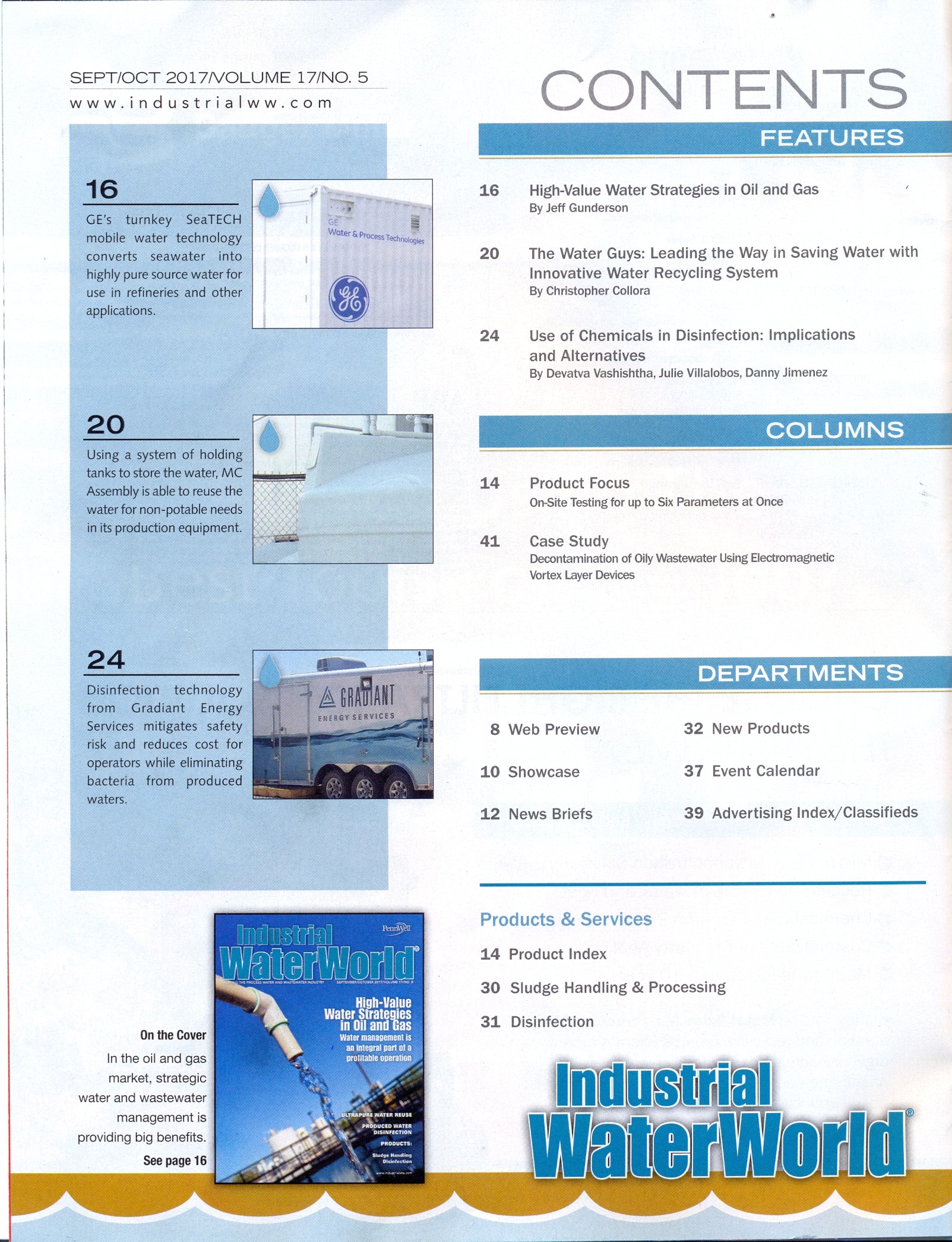 Le cinquième numéro de 2017 du magazine « Industrial WaterWorld » a publié un article intitulé « Decontamination of Oily Wastewater Using Electromagnetic Vortex Layer Devices”.