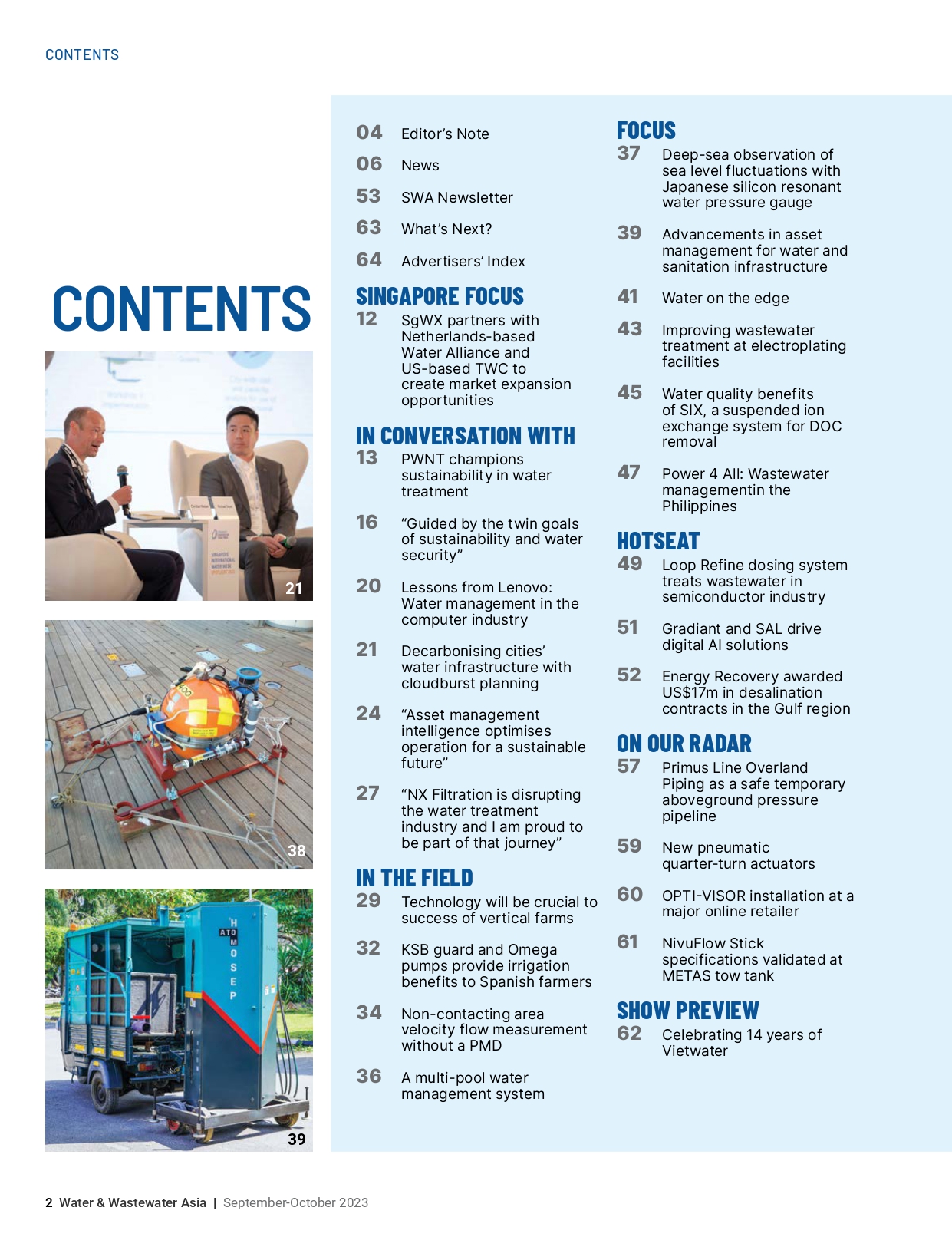 En Septembre 2023, un nouveau numéro du magazine «Water & Wastewater Asia» a été publié, soutenu par la Singapore Water Association.