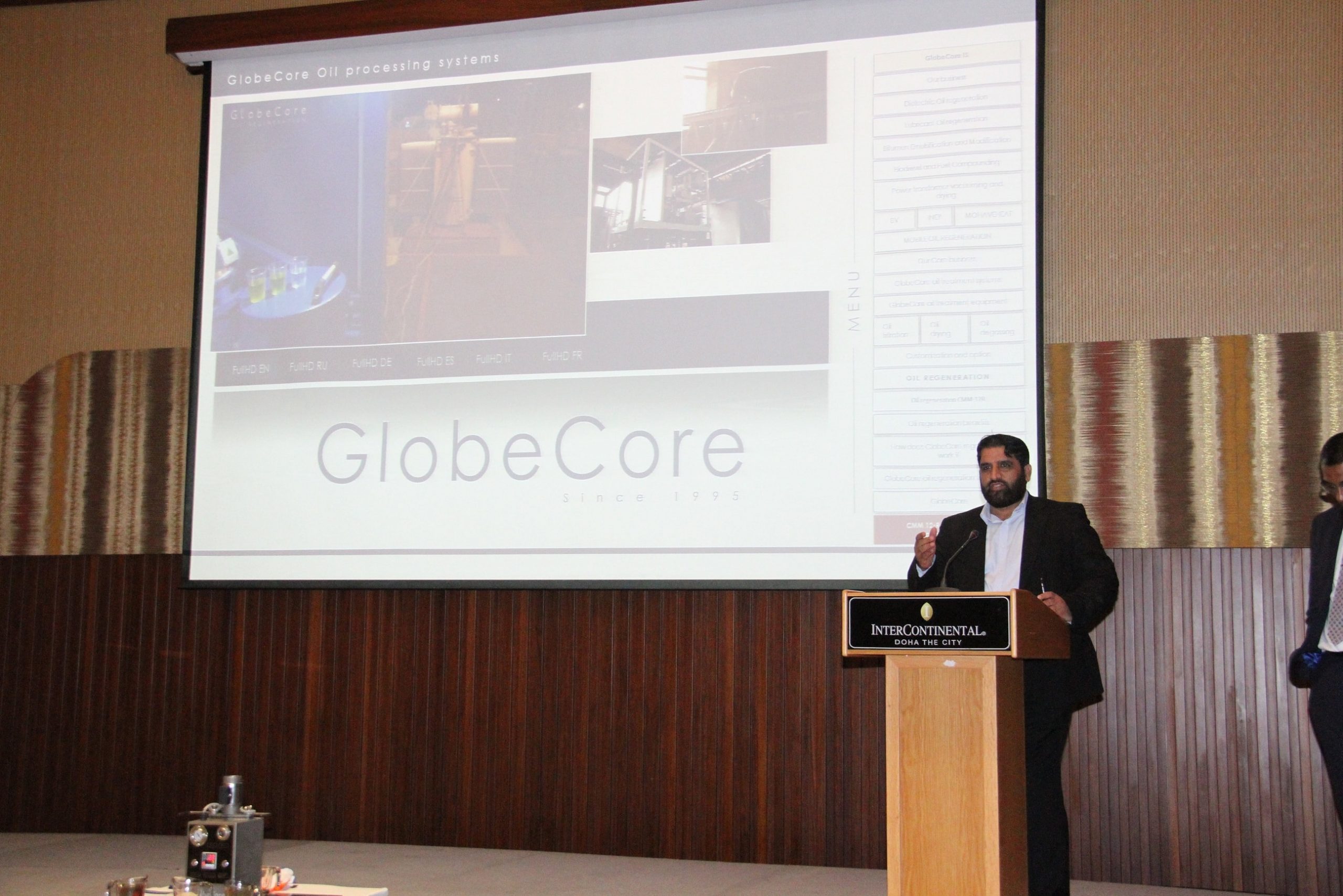 21 novembre, Doha, Qatar: GlobeCore présente des unités de purification et de régénération des huiles minérales.
