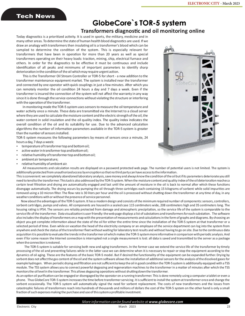 GlobeCore / Publications / GlobeCore dans la presse : Système de surveillance des transformateurs TOR-5 (Electronic City Magazine)