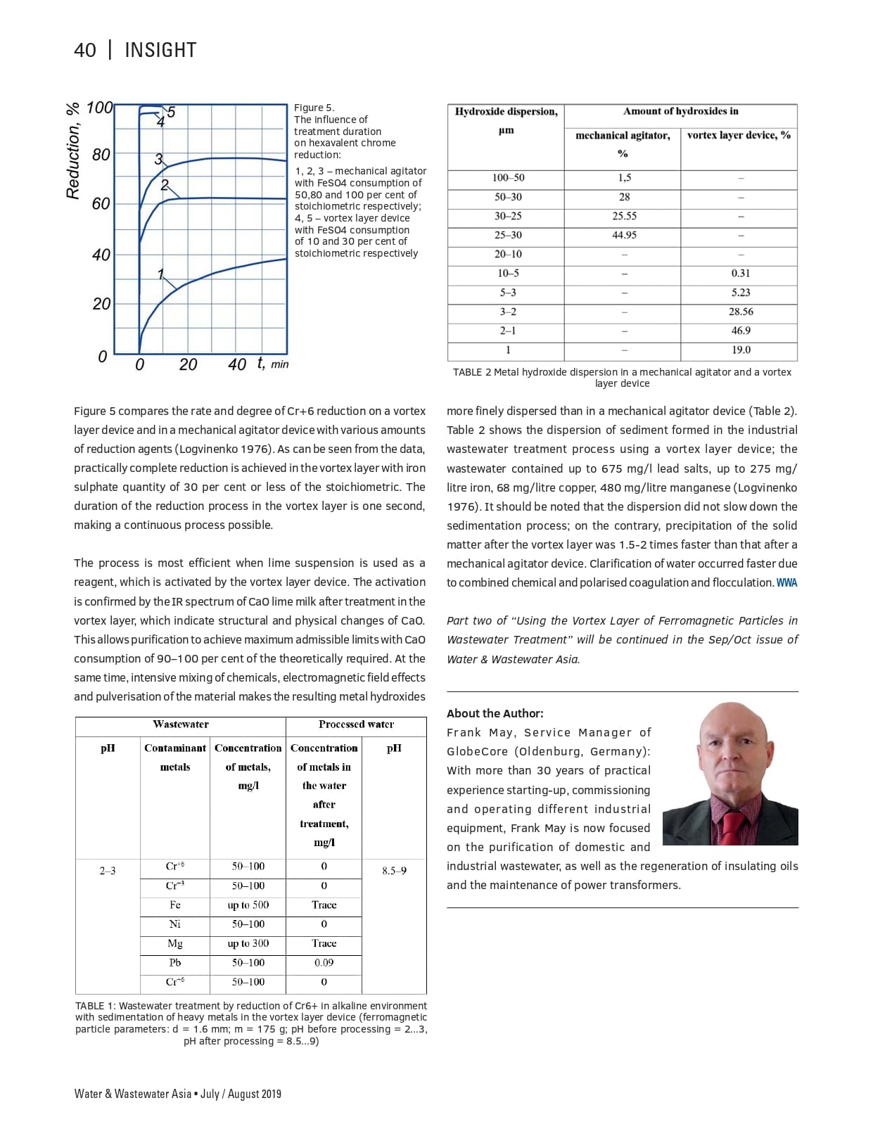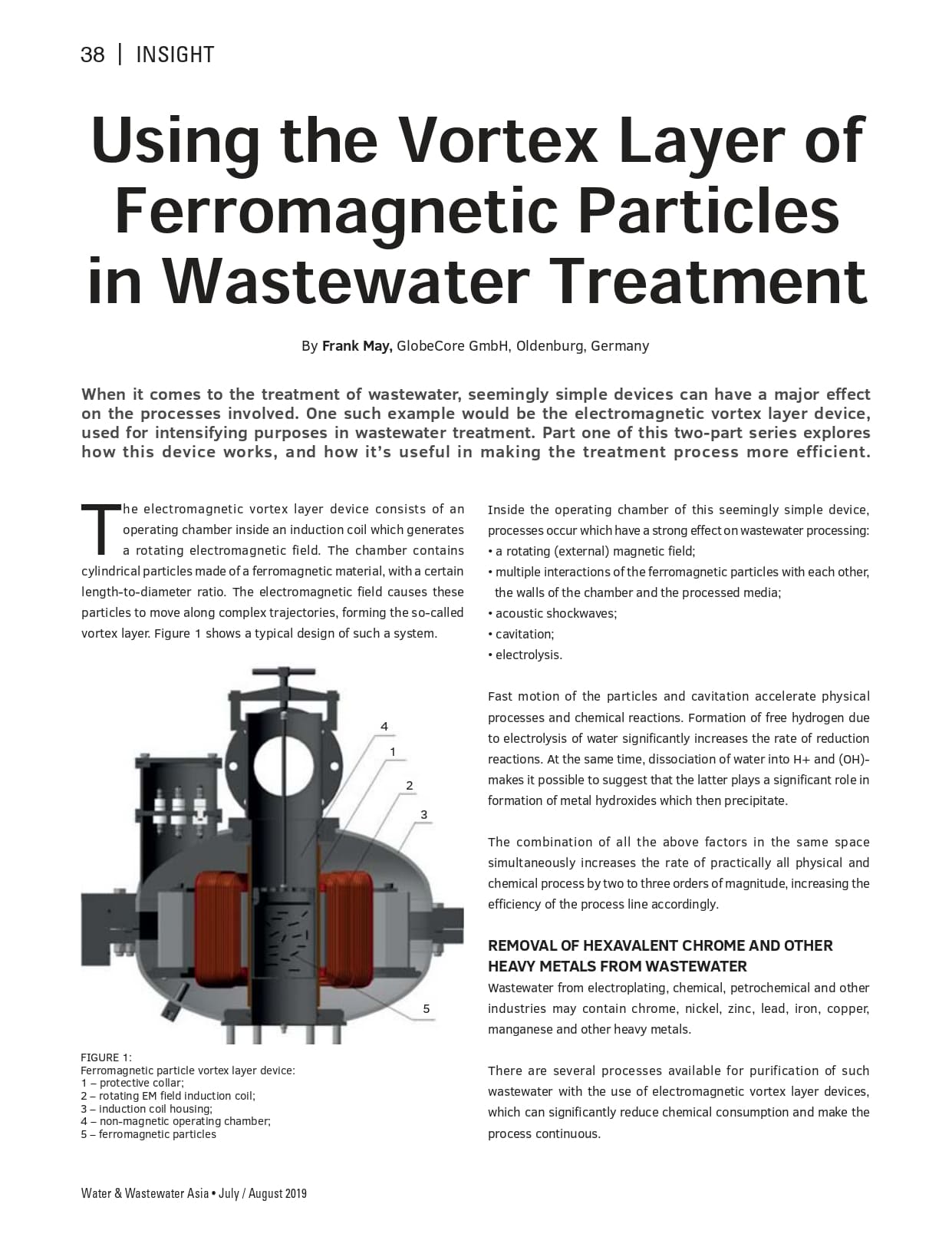 The magazine publishes the first part of an article titled Using the Vortex Layer of Ferromagnetic Particles in Wastewater Treatment article by GlobeCore’s service manager Frank May.