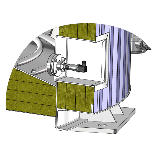 The USB-4 modified bitumen1Modified bitumen is characterized by improved flexibility and longer service life, it also has a lower brittleness temperature and higher softening temperature. collection tank is designed for storage of modified bitumen produced with the USB-3 unit. It can be supplied as a stand-alone product and be retrofitted into existing modified bitumen production equipment. The product is equipped with automatic agitator2An agitator is a device or mechanism to put something into motion by shaking or stirring. and heating circuit. The system is equipped with Dinel and Wika temperature and level sensors as well as overflow sensors.
