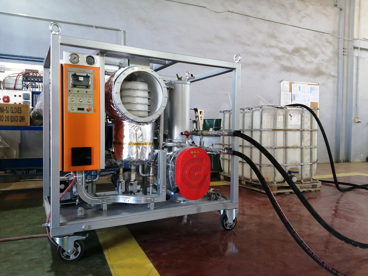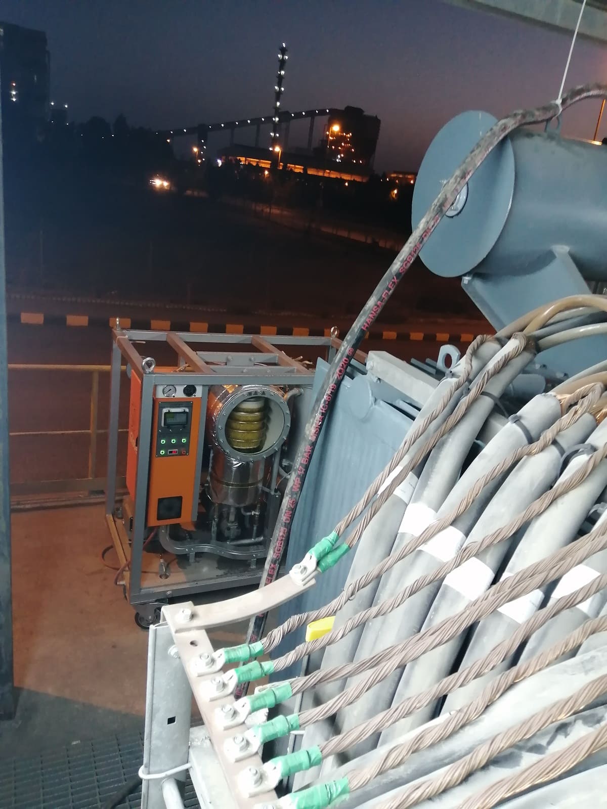 This device can heat oil-filled electrical equipment with hot transformer oil and evacuate air from vacuum3Vacuum is space devoid of matter. An approximation to such vacuum is a region with a gaseous pressure much less than atmospheric pressure. systems.