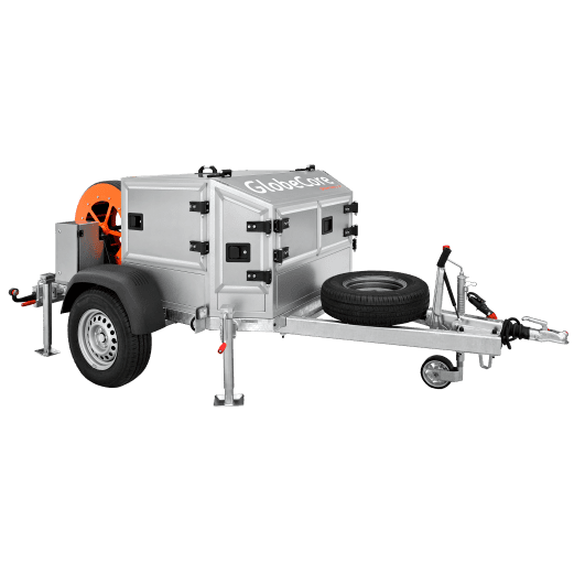 The СММ-GL is a trailer with one axle, which supports the control section and the process section. The process section also includes hose reels. Control section doors are equipped with secure locks.