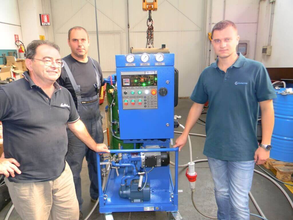 Desta vez o lançamento foi em Carpenedolo (província de Brescia, Itália). Uma unidade móvel do tipo CMM-0.6 foi colocada em operação. Sua finalidade é eliminar impurezas mecânicas e óleos de transformadores a vácuo. O produto de entrada deve ter uma viscosidade que não exceda 70 cSt a uma temperatura de 50 ° C. A purificação qualitativa dos óleos de transformador é obtida através da sua passagem múltipla através da unidade de filtragem e secagem, por vácuo e remoção de vapor de água da superfície.