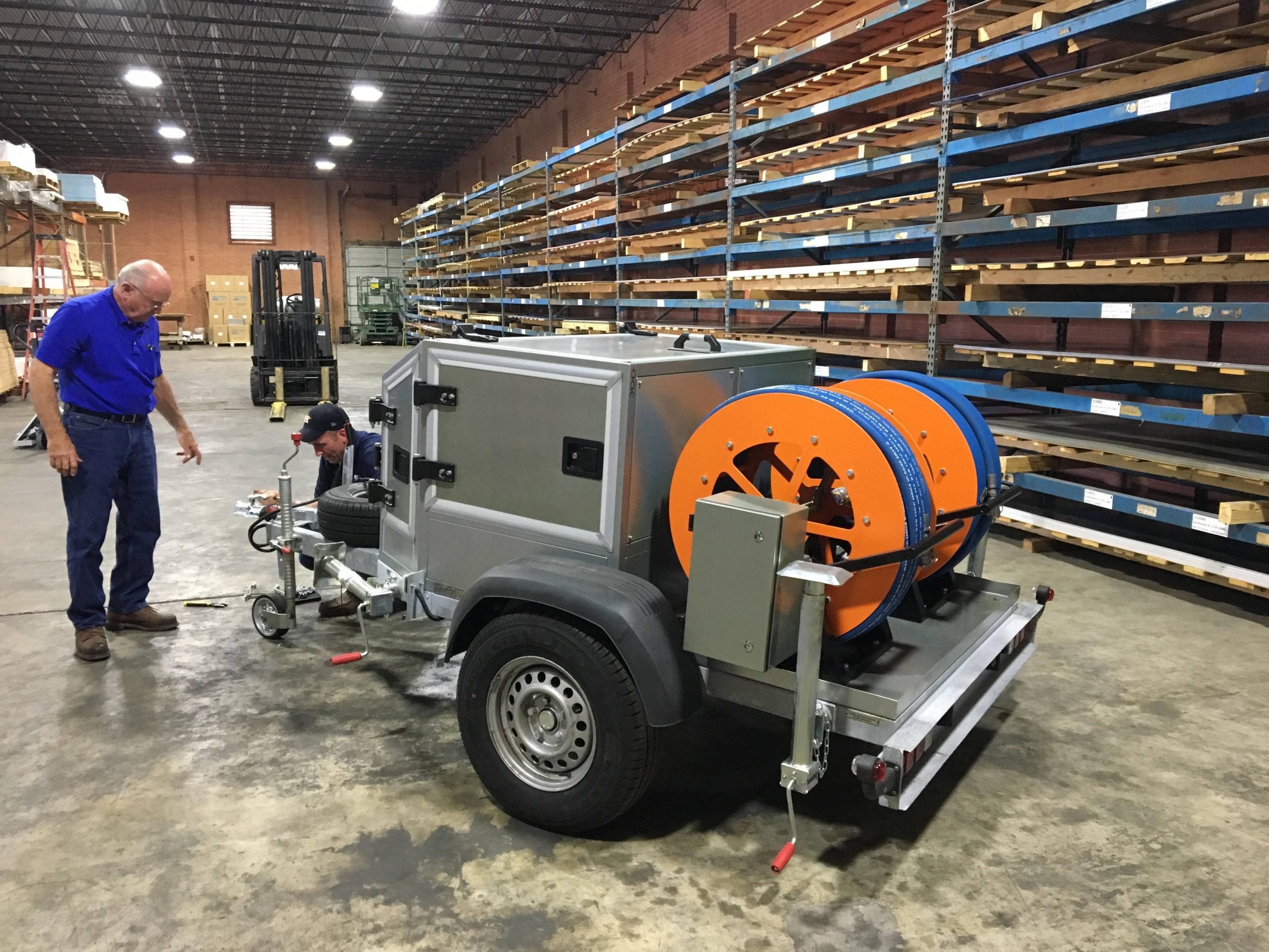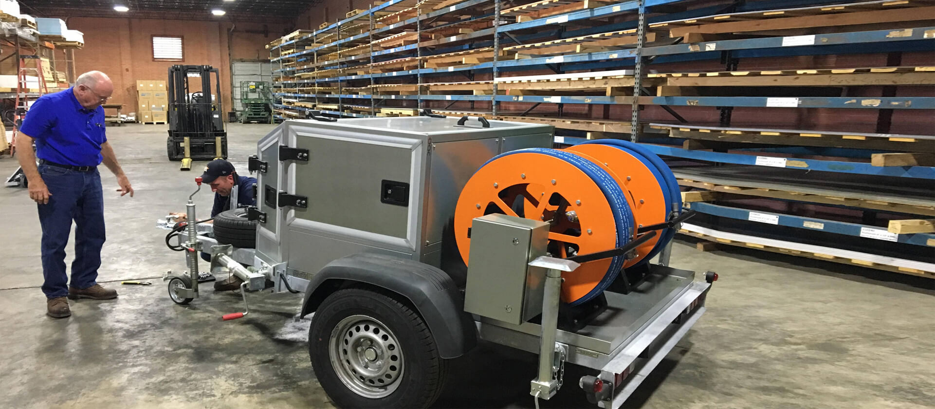 Unidade СММ-GL Tem um reboque de eixo único no qual o bloco de trabalho e o bloco de controle estão montados. A unidade de trabalho também inclui tambores para mangueiras. As portas da unidade de controle são equipadas com dispositivos de travamento confiáveis.