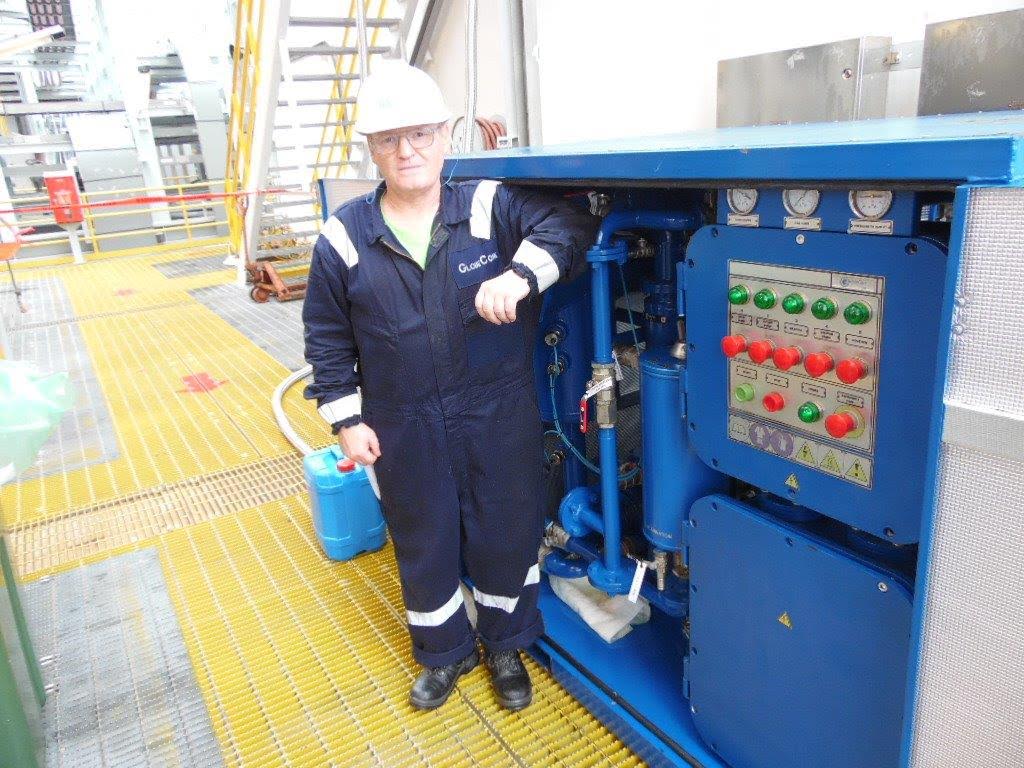 One of these units was launched in 2015 on a drilling platform off the coast of Nigeria, where it treated FR3 transformer fluid. This is the CMM-4/7 Clean Marine model.