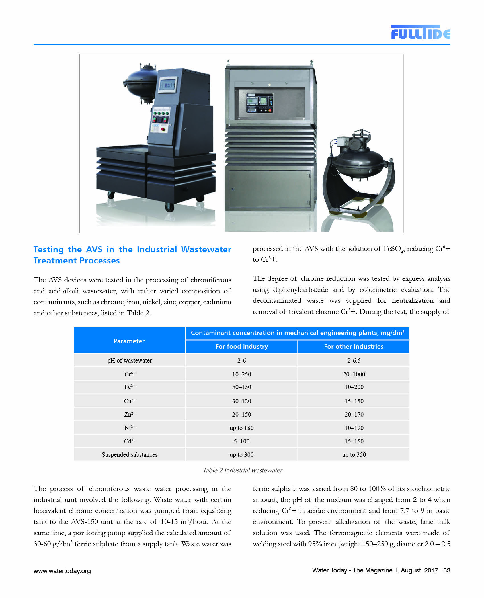 The eighth issue of the scientific-research magazine “Water Today” of this year 2017 published an article “Electromagnetic Intensification of Heavy Metal Removal and Wastewater Decontamination”.